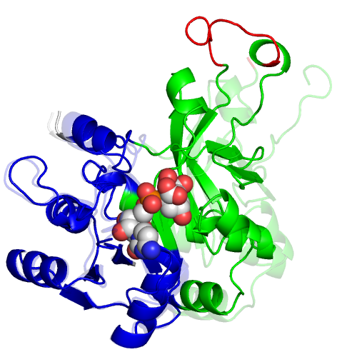 *1 The location of the fixed and moving segments indicated by the residue number assigned in the ligand-bound form. The background color of characters indicates the corresponding segment in the structure. The colored segments not described in the Table are: 1) a part of component in which the motion is small (< 1.0 A), or, 2) a part of a protomer of homodimers, for which a corresponding part of the other protomer is shown in the Table. |