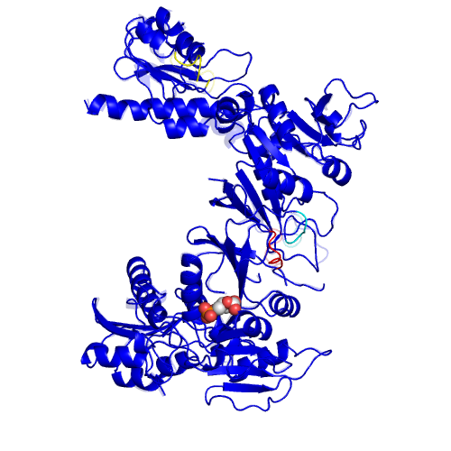 *1 The location of the fixed and moving segments indicated by the residue number assigned in the ligand-bound form. The background color of characters indicates the corresponding segment in the structure. The colored segments not described in the Table are: 1) a part of component in which the motion is small (< 1.0 A), or, 2) a part of a protomer of homodimers, for which a corresponding part of the other protomer is shown in the Table. |
