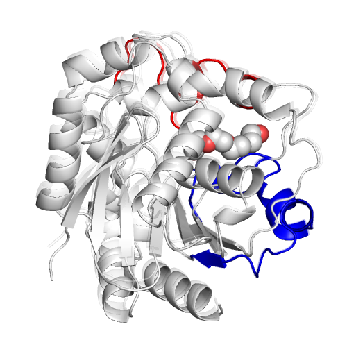 *1 The location of the fixed and moving segments indicated by the residue number assigned in the ligand-bound form. The background color of characters indicates the corresponding segment in the structure. The colored segments not described in the Table are: 1) a part of component in which the motion is small (< 1.0 A), or, 2) a part of a protomer of homodimers, for which a corresponding part of the other protomer is shown in the Table. |